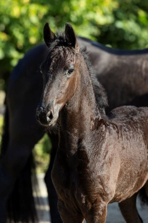 Foppe heeft een afstamming om van te watertanden. Vader Kees 531 is de tuigtopper die hier op de veulenveiling een ware beroemdheid werd. De nakomelingen van Kees 531 weten net als hij zelf in beweging te imponeren. De moeder van dit hengstveulen is Rashira von Marschhorst, een Ster Preferente Prestatie merrie met een enorme staat van dienst. Zij fokte onder andere de bekende Bregje fan ’t Lakerveld, Model AAA, kampioen van Noord-Zuidholland en finalist van de Friesian Talent Cup. Ook de bekende Model AAA merrie Liza van de Meikade is een zus van dit hengstveulen. Liza werd meermaals kampioen en werd zelfs Paard van het jaar in Amerika. De grootmoeder van Foppe is de Kroon merrie Ayla von Marschorst en zij is weer een dochter van de Model Preferente Oda.